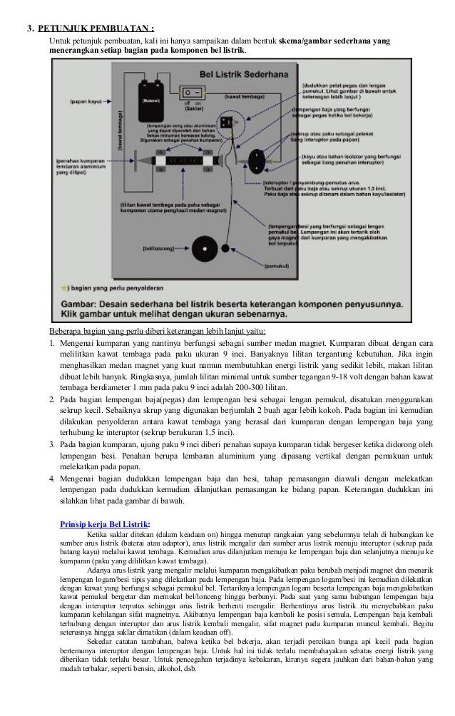 Bel Listrik Sederhana from imgv2-1-f.scribdassets.com Berbekal ujjian praktek fisika, saya menemukan sedikit petunjuk mengenai perangkat bel listrik sederhana beserta cara pembuatannya. Kawat tembaga 1 utas/tanpa penyambungan (berdiameter 1 mm, panjang 11 m). Bahan yang digunakan diambil dari lingkungan sekitar. Bahan yang digunakan diambil dari lingkungan sekitar. Berangkat dari tugas kuliah mengenai pemberdayaan media belajar ipa yang dikerjakan secara kelompok, akhirnya saya dan beberapa rekan kelompok mulai mencoba membuat media belajar dalam bidang ipa yaitu bel listrik. Bel listrik merupakan salah satu alat yang juga memanfaatkan sifat kemagnetan. Ketika ada tamu,misalnya maka orang tersebut tidak perlu. Makalah bel listrik sederhana 03.53 bel listrik.
