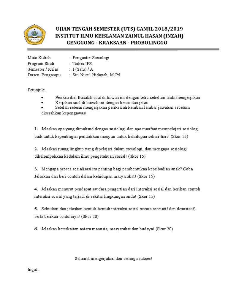 Soal Uts Pengantar Sosiologi from imgv2-1-f.scribdassets.com Soal tes masuk kuliah dkv tahun ini anni3 com contoh soal dkv, soal tes masuk kuliah dkv tahun ini kuliah dkv opini anni3 5 30 2019 17 komentar dkv umumnya terbagi lagi menjadi desain grafis multimedia dan periklanan tiap perguruan tinggi punya kebijakan tentang lingkupnya tapi. 2.meliputi kegiatan apa saja yang ditetapkan dalam perencanaan itu ? Sintaks java untuk melakukan kompilasi t. Apabila panjang pipa 3 km , hitung kehilangan tenaga di. Uts basis data jurusan sistem informasi. Mahasiswa bisa mengambil banyak mata kuliah.entitas abstrak dari pernyataan tersebut adalah. Hari kiamat juga disebut yaum al qiyamah yaitu hari…. Contoh soal bahasa indonesia kelas 12 semester 1 dan jawabannya ~ pilihan ganda.