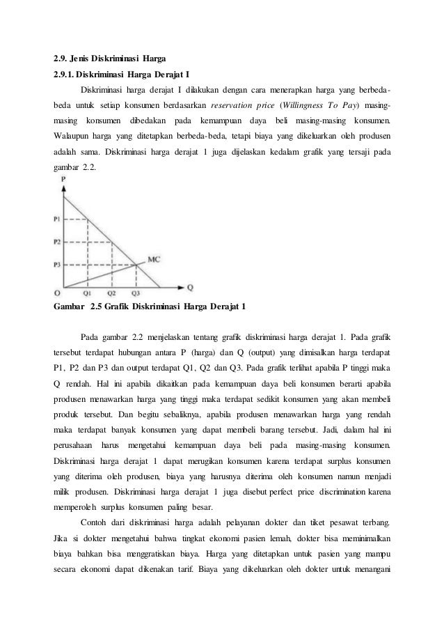 Rumus Diskriminasi Harga - Harga Dan Output Di Pasar Monopoli Murni Revisi Pdf Txt : Diskriminasi harga merupakan salah satu bentuk hambatan masuk (barrier to entry) yang dilakukan monopolis untuk menghalangi masuknya perusahaan lain ke dalam pasar yang dikuasainya.. Tarif yg b'beda yg ditetapkan oleh dokter, kansultan akuntansi, konsultan hkm dll 3. Diskriminasi harga merupakan salah satu bentuk hambatan masuk (barrier to entry) yang dilakukan monopolis untuk menghalangi masuknya perusahaan lain ke dalam pasar yang dikuasainya. Diskriminasi harga ini dilakukan karena perusahaan tidak memiliki informasi mengenai reservation price konsumen. Penjualan total q total = 50 unit harga jual: Harga p bagi suatu item menunjukkan taraf kesukaran item bagi kelompok yang bersangkutan, yaitu kelompok yang menjadi dasar dalam penghitungan p itu sendiri.